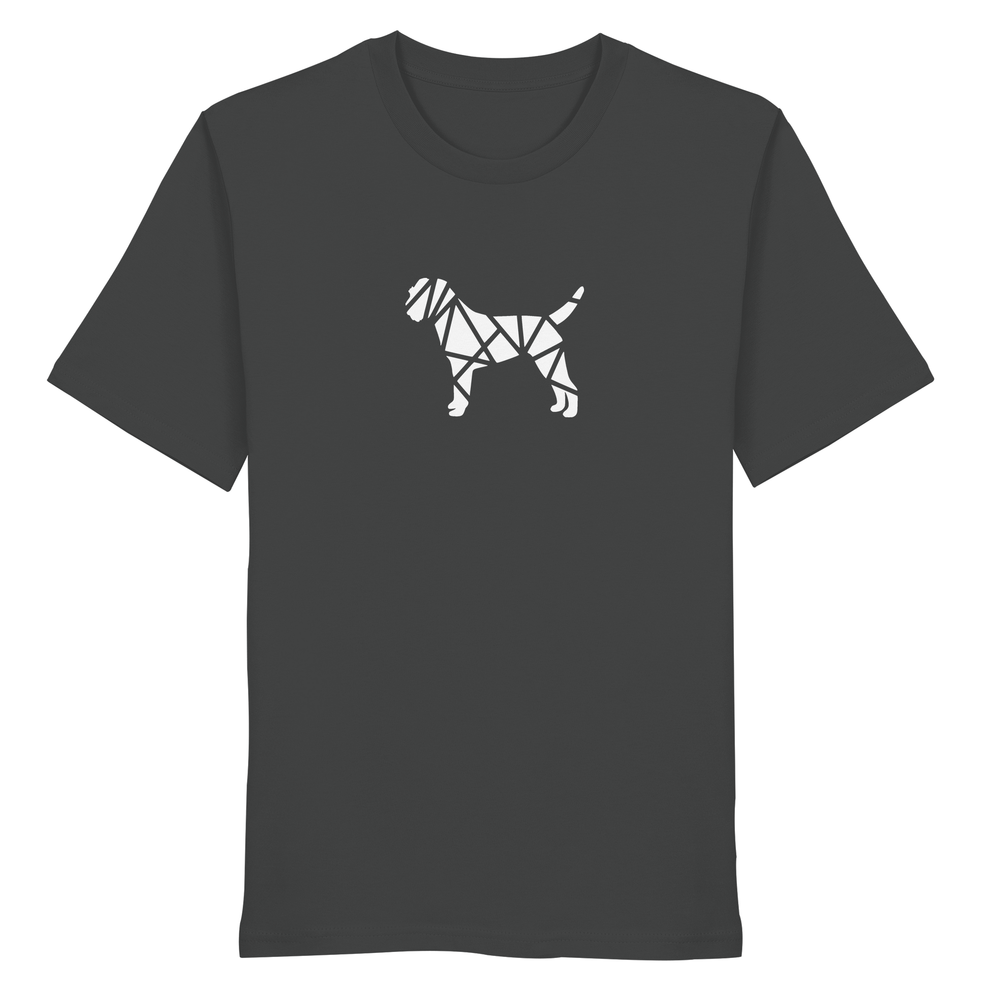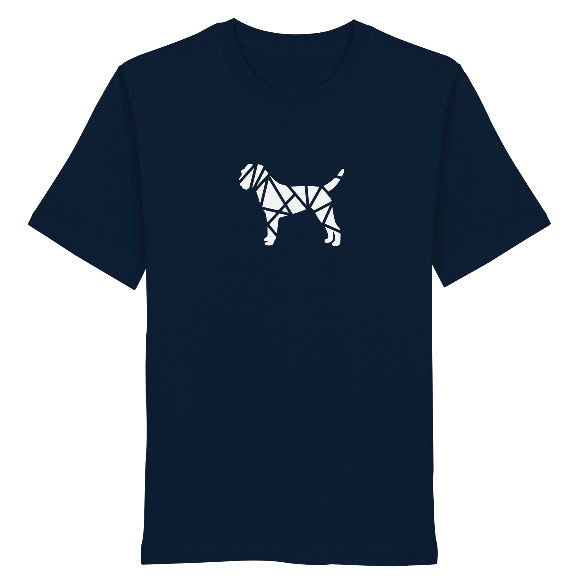 Bei diesem Design setzt sich die Border Terrier-Silhouette aus geometischen Figuren zusammen und ist als zentrales Element im Brustbereich aufgebracht.