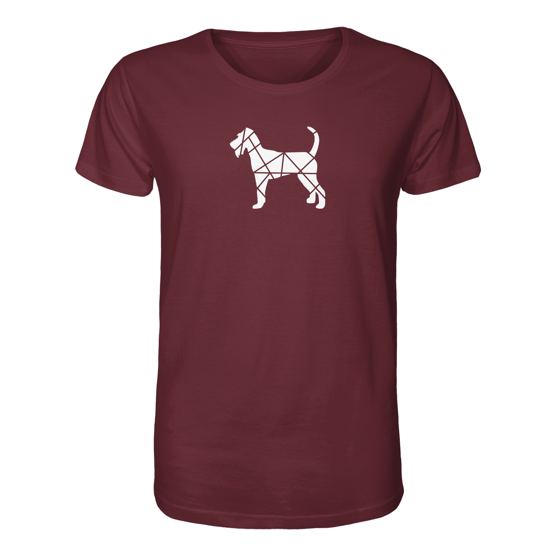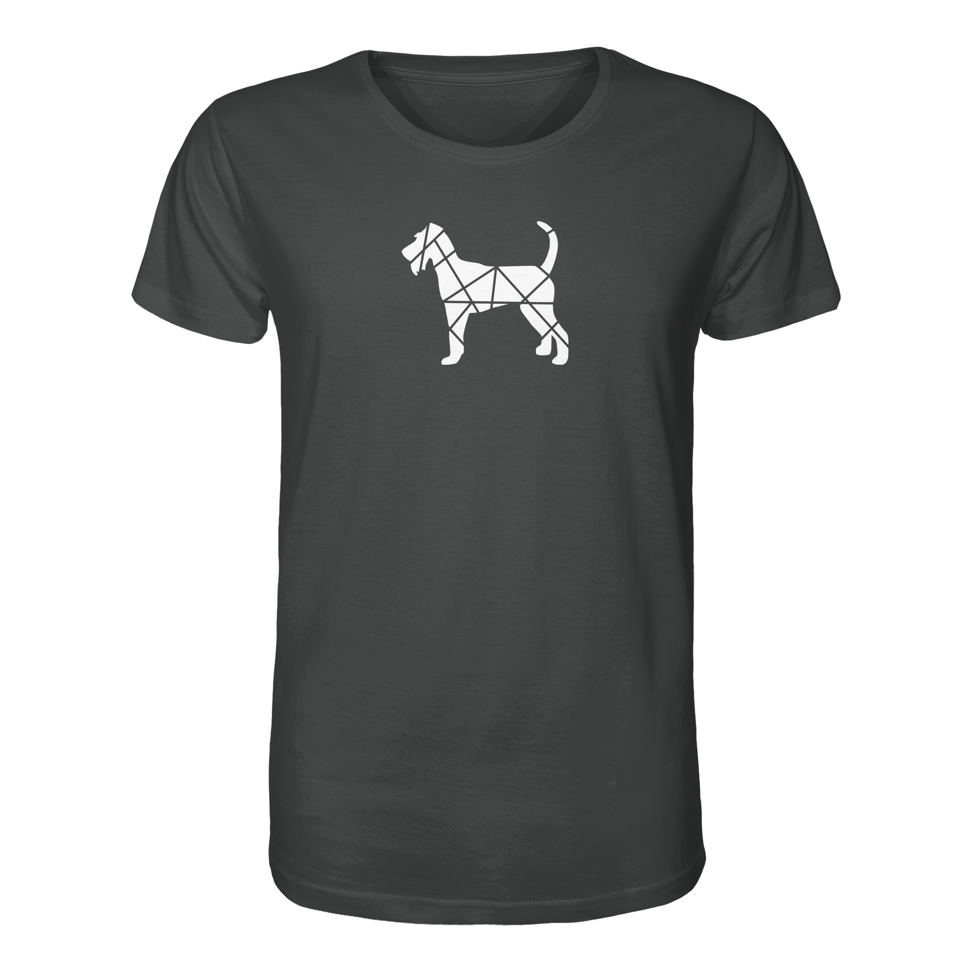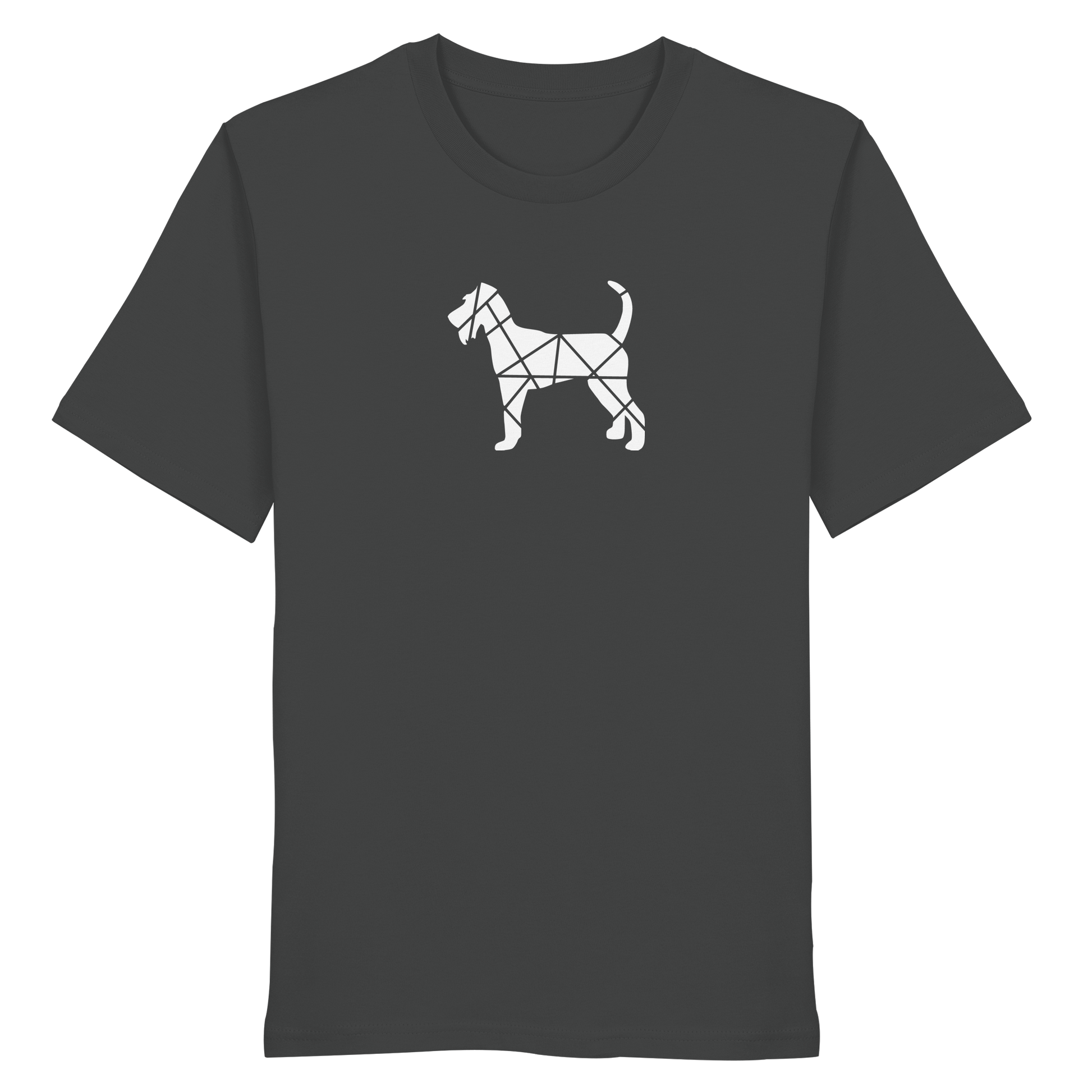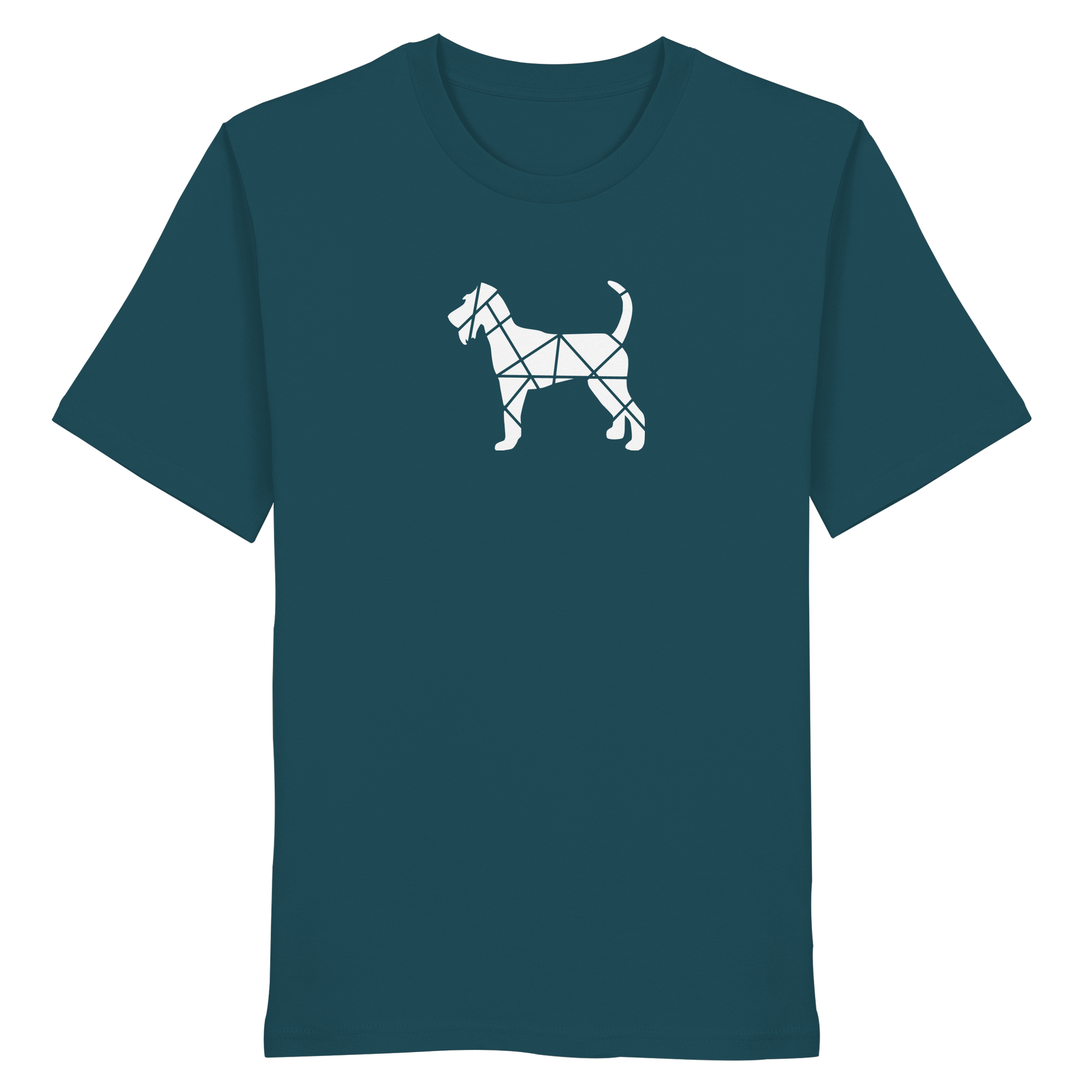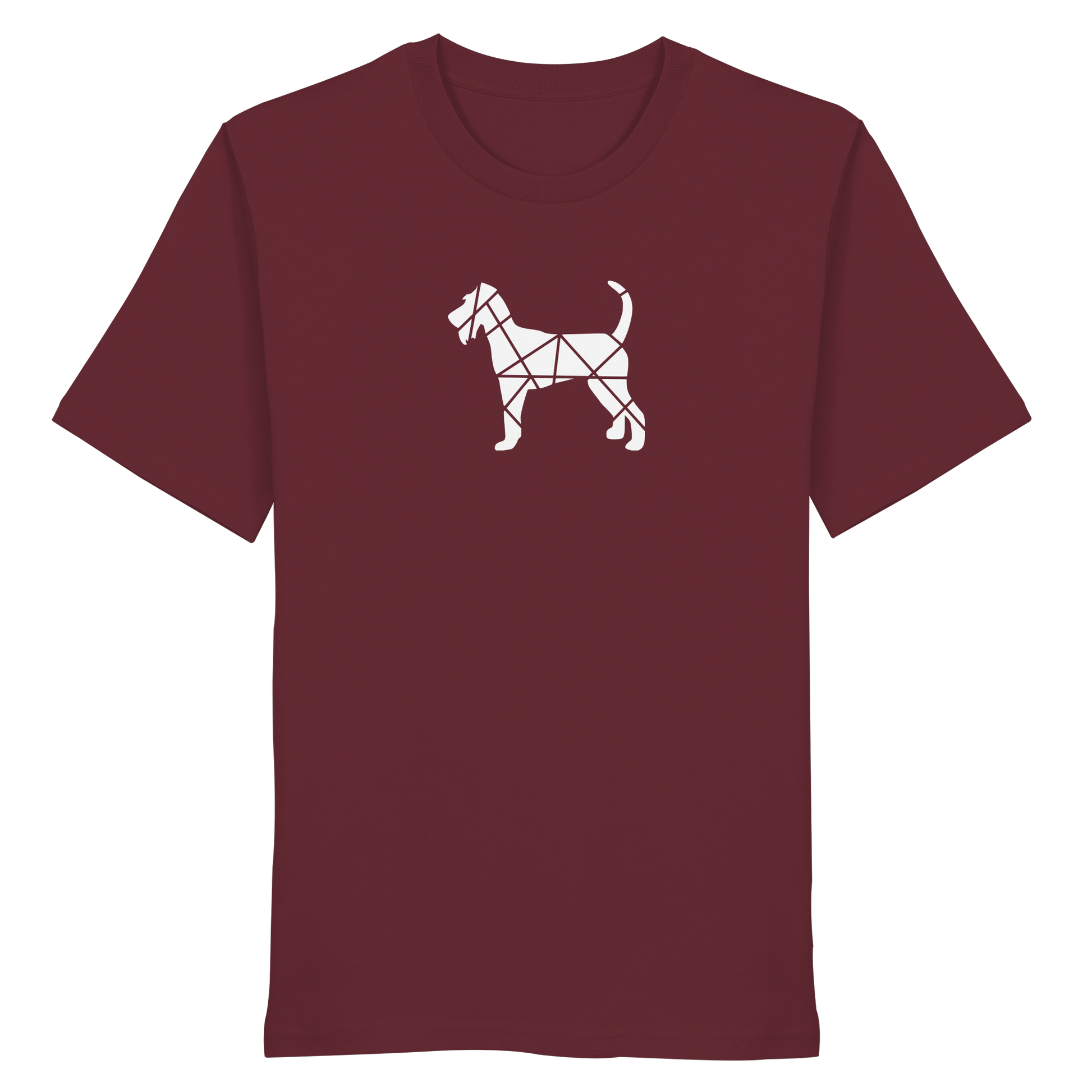 Bei diesem Design setzt sich die Irish Terrier-Silhouette aus geometrischen Figuren zusammen und ist als zentrales Element im Brustbereich aufgebracht.