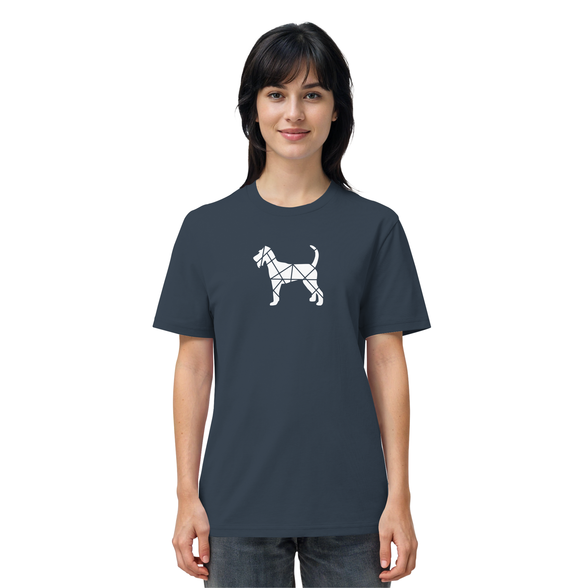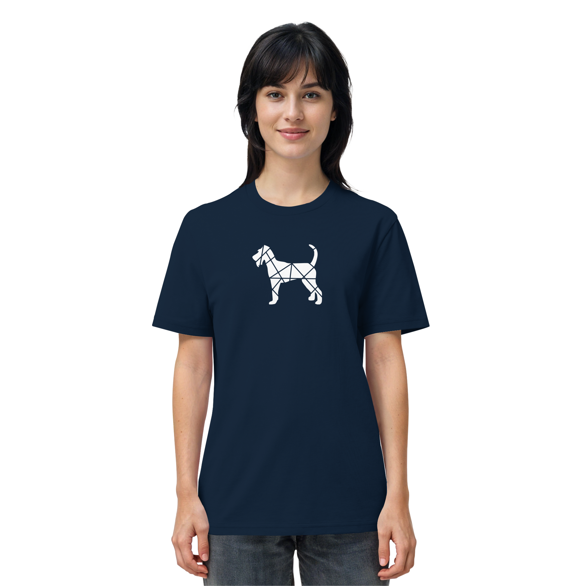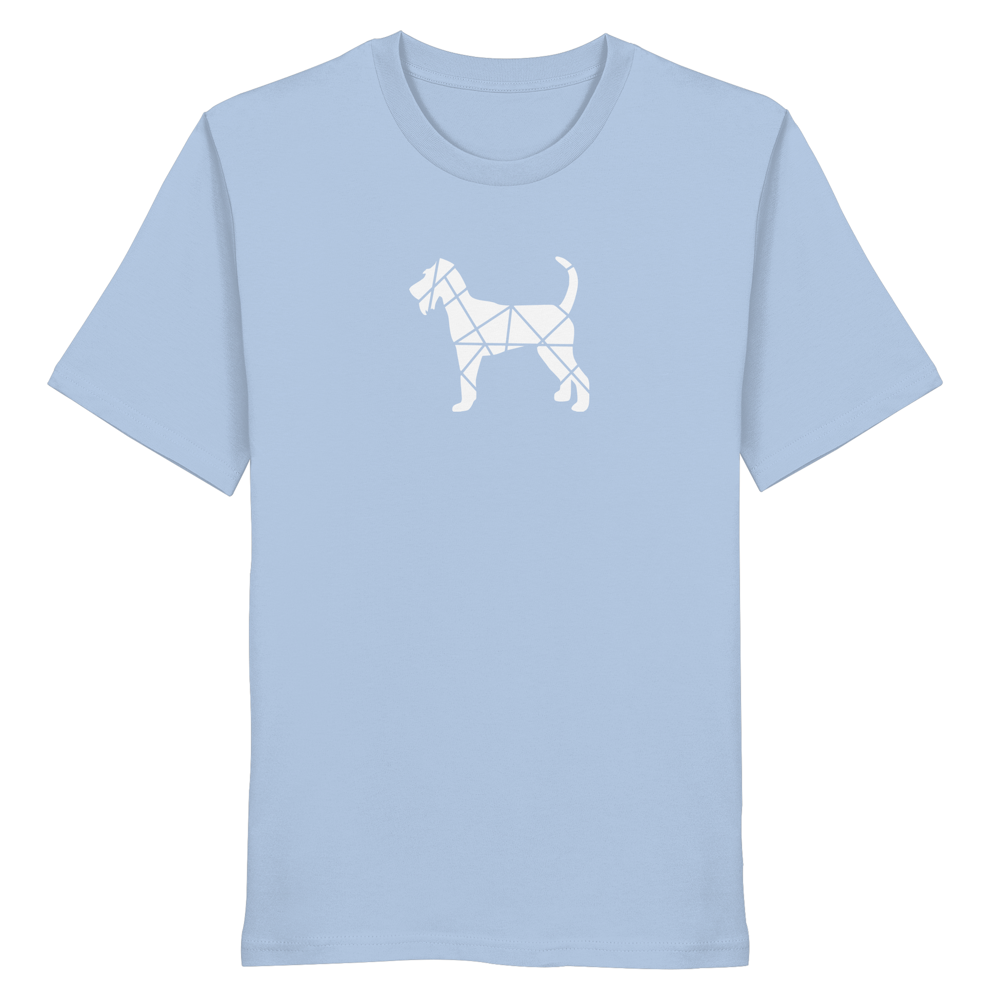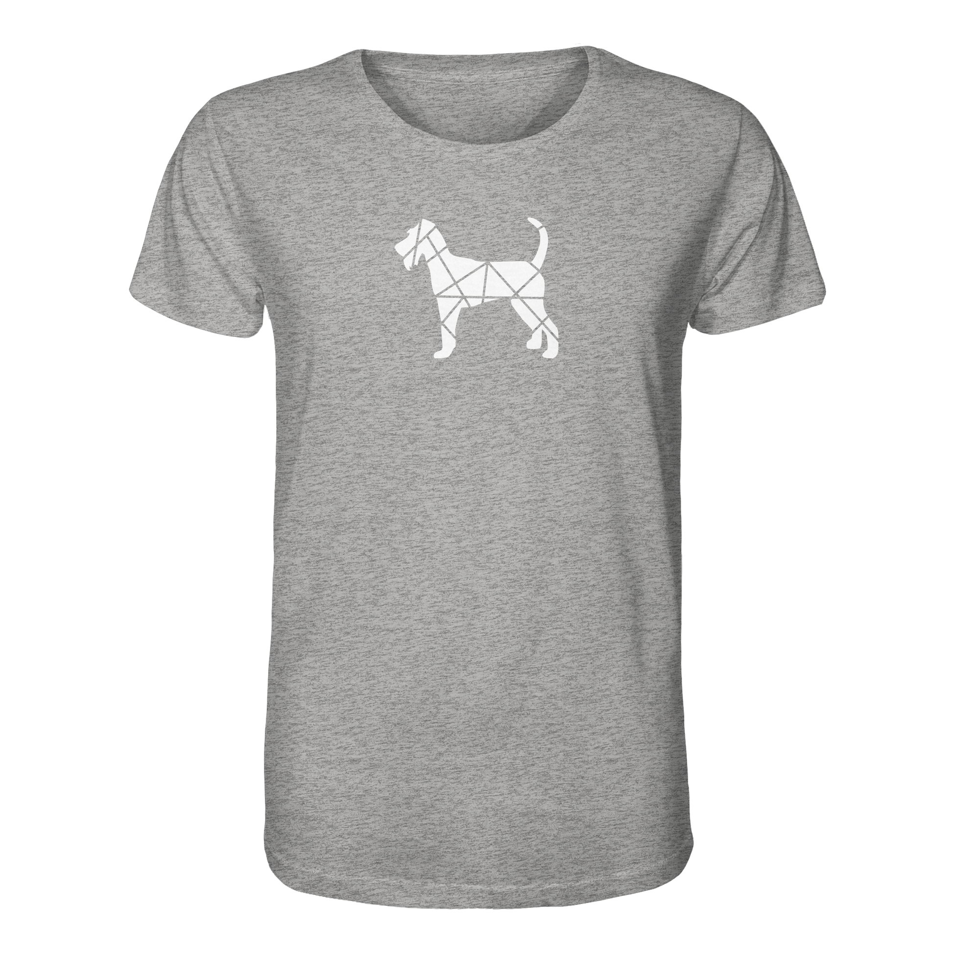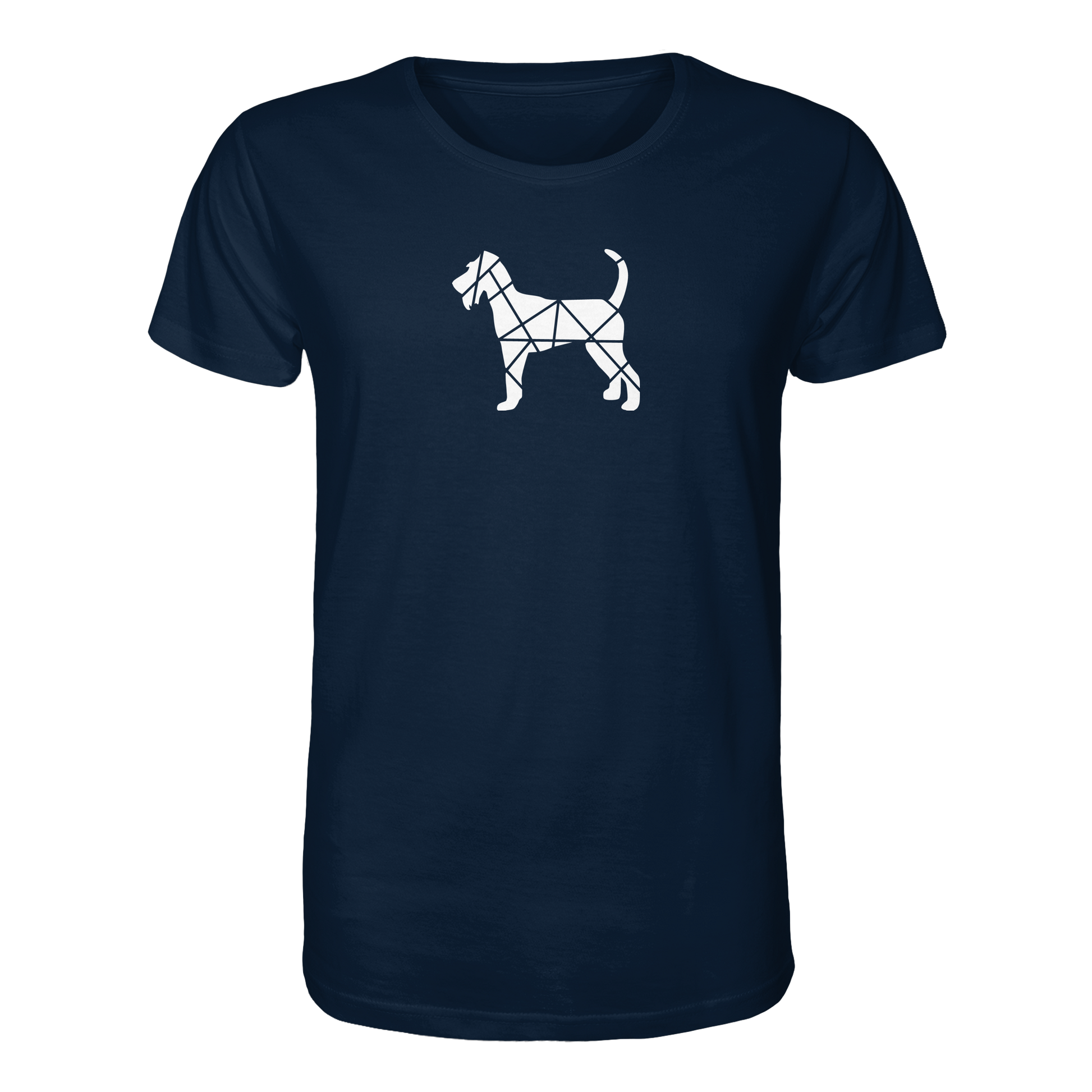 Bei diesem Design setzt sich die Irish Terrier-Silhouette aus geometrischen Figuren zusammen und ist als zentrales Element im Brustbereich aufgebracht.
