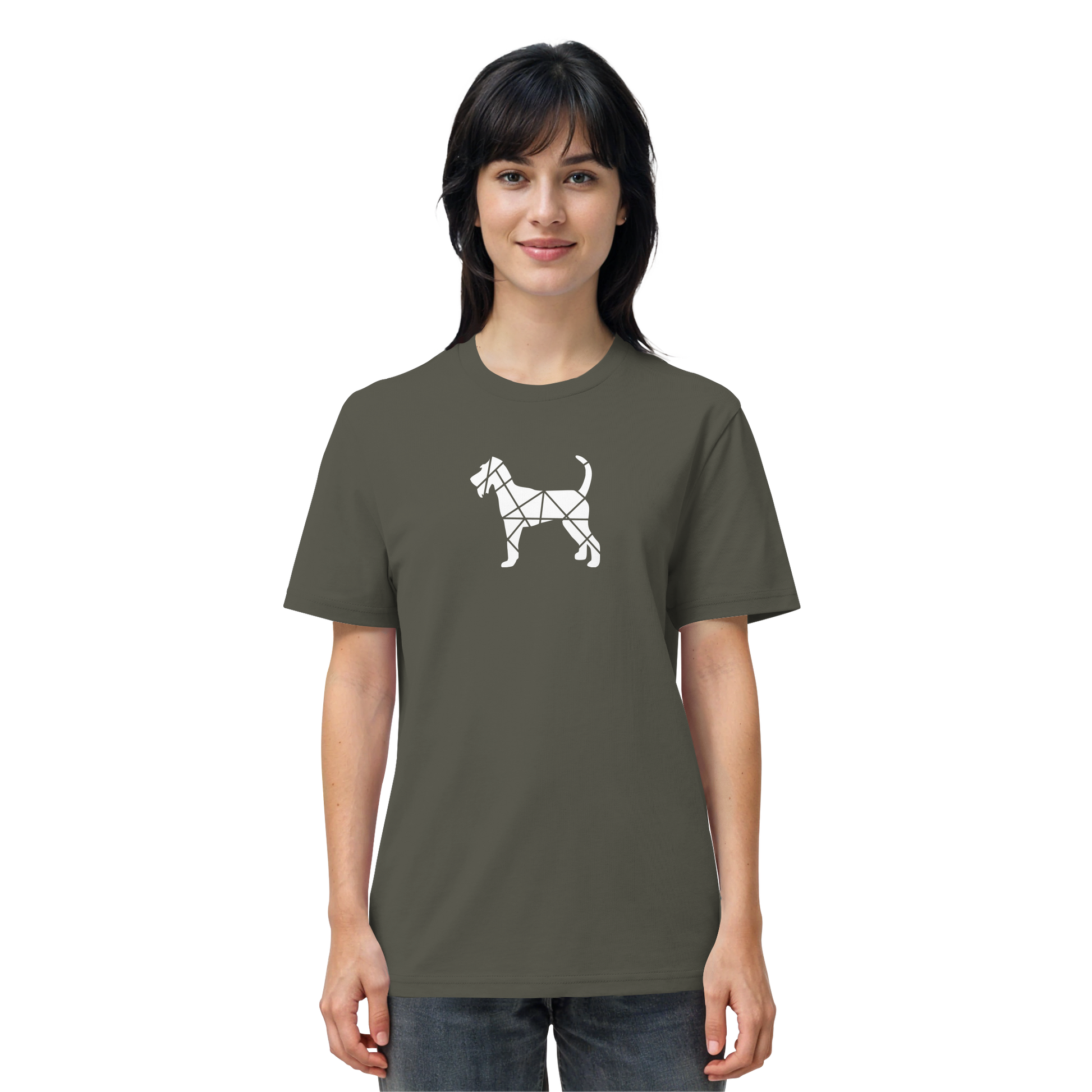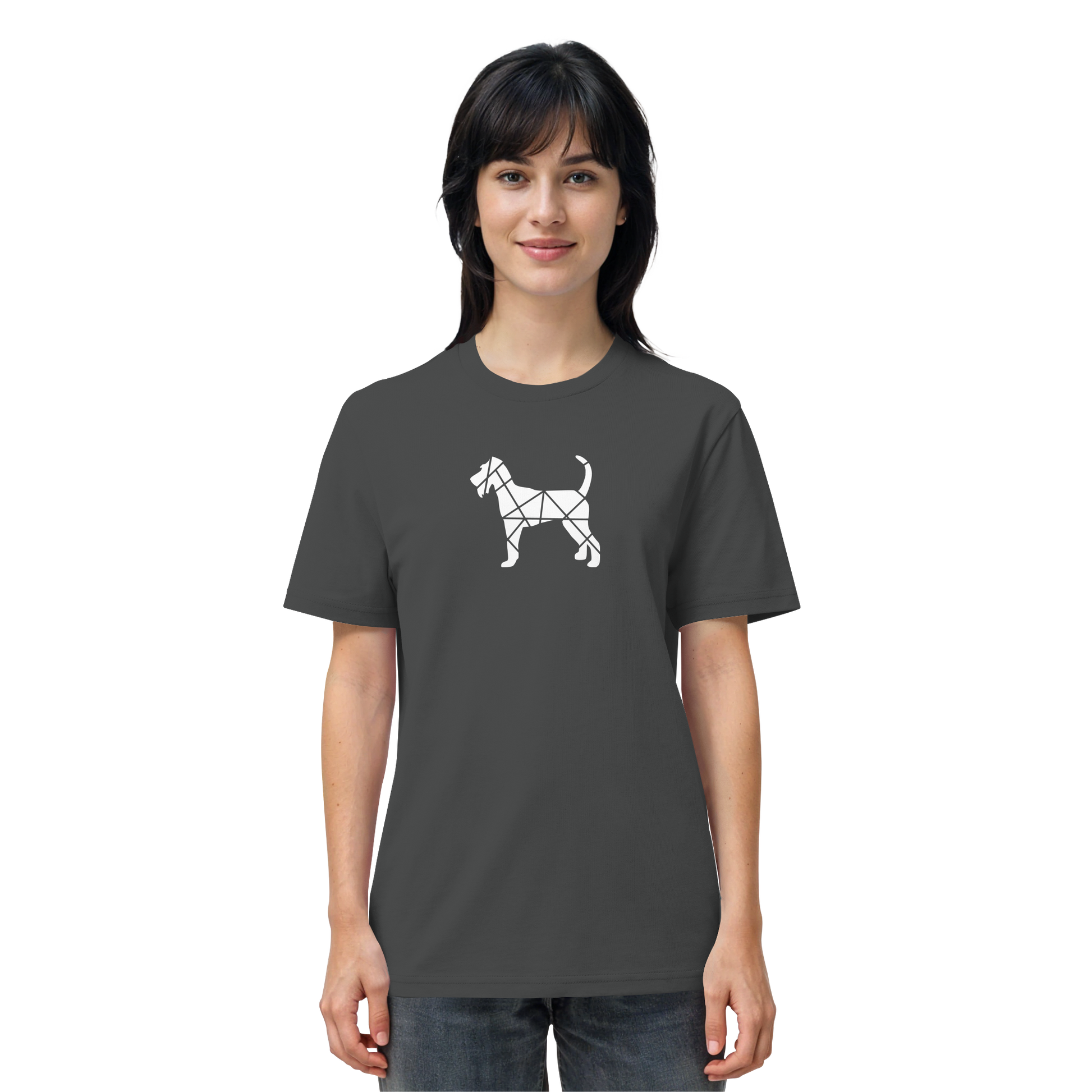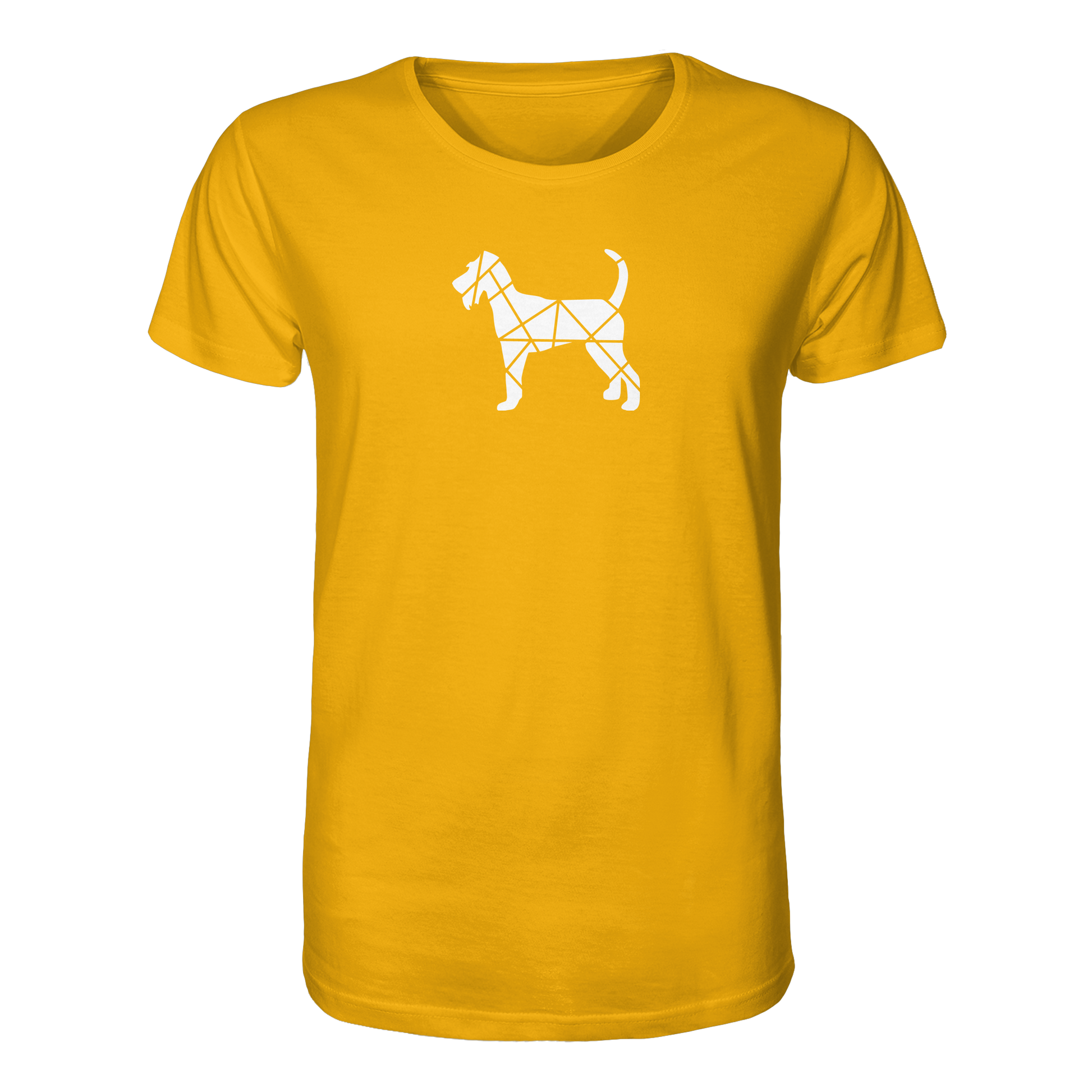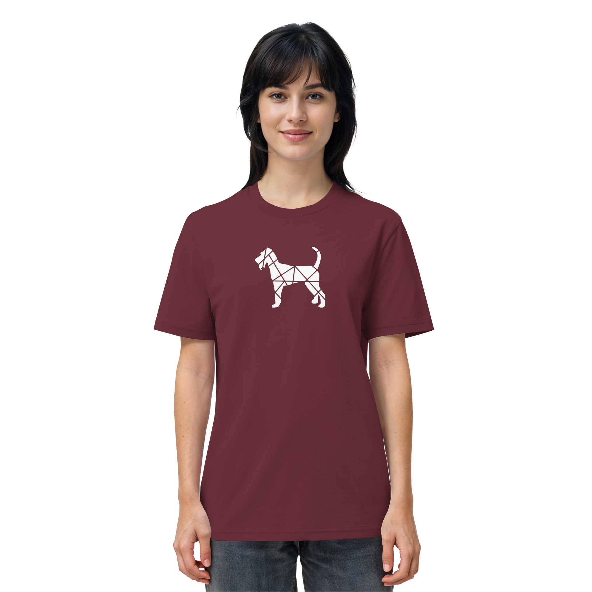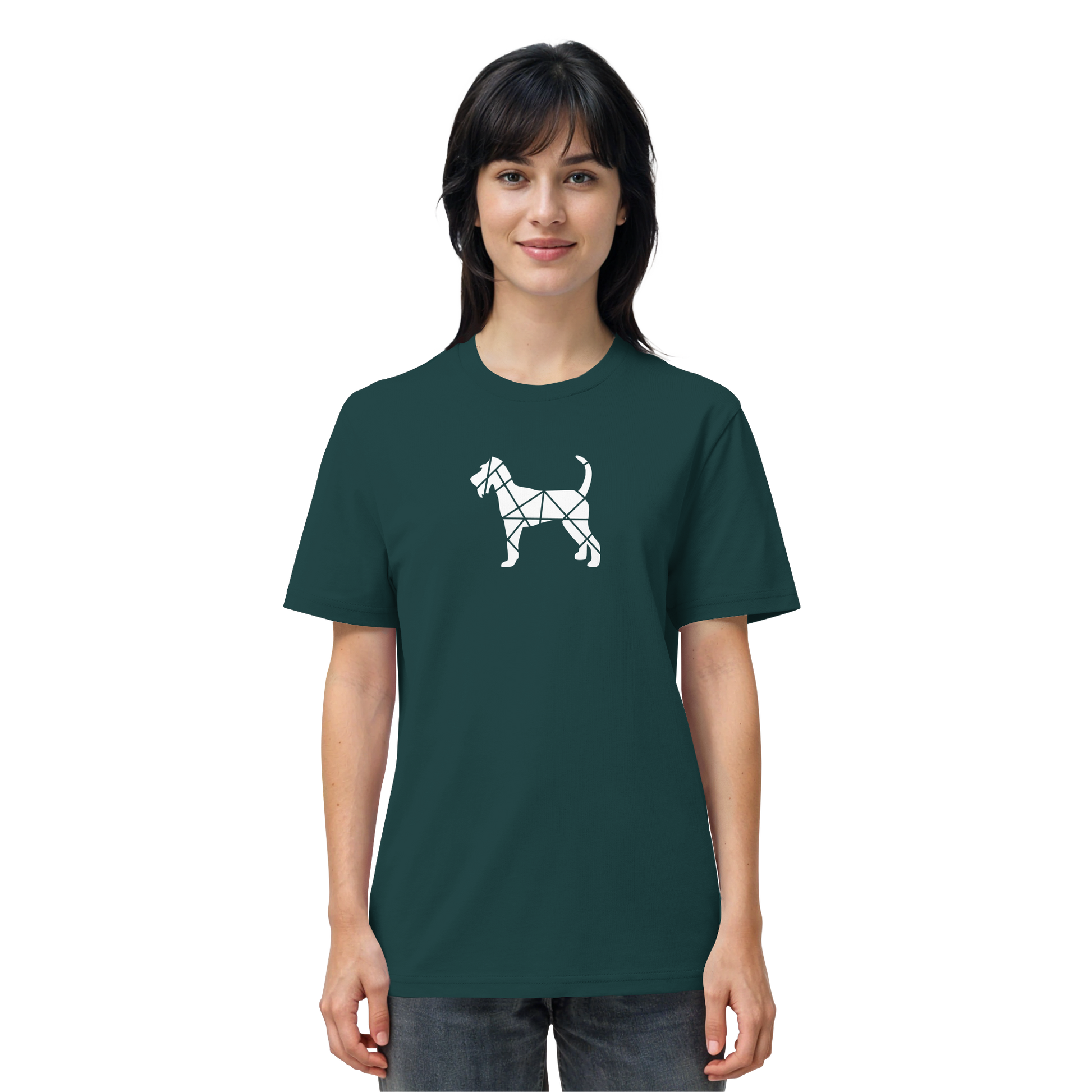 Bei diesem Design setzt sich die Irish Terrier-Silhouette aus geometrischen Figuren zusammen und ist als zentrales Element im Brustbereich aufgebracht.
